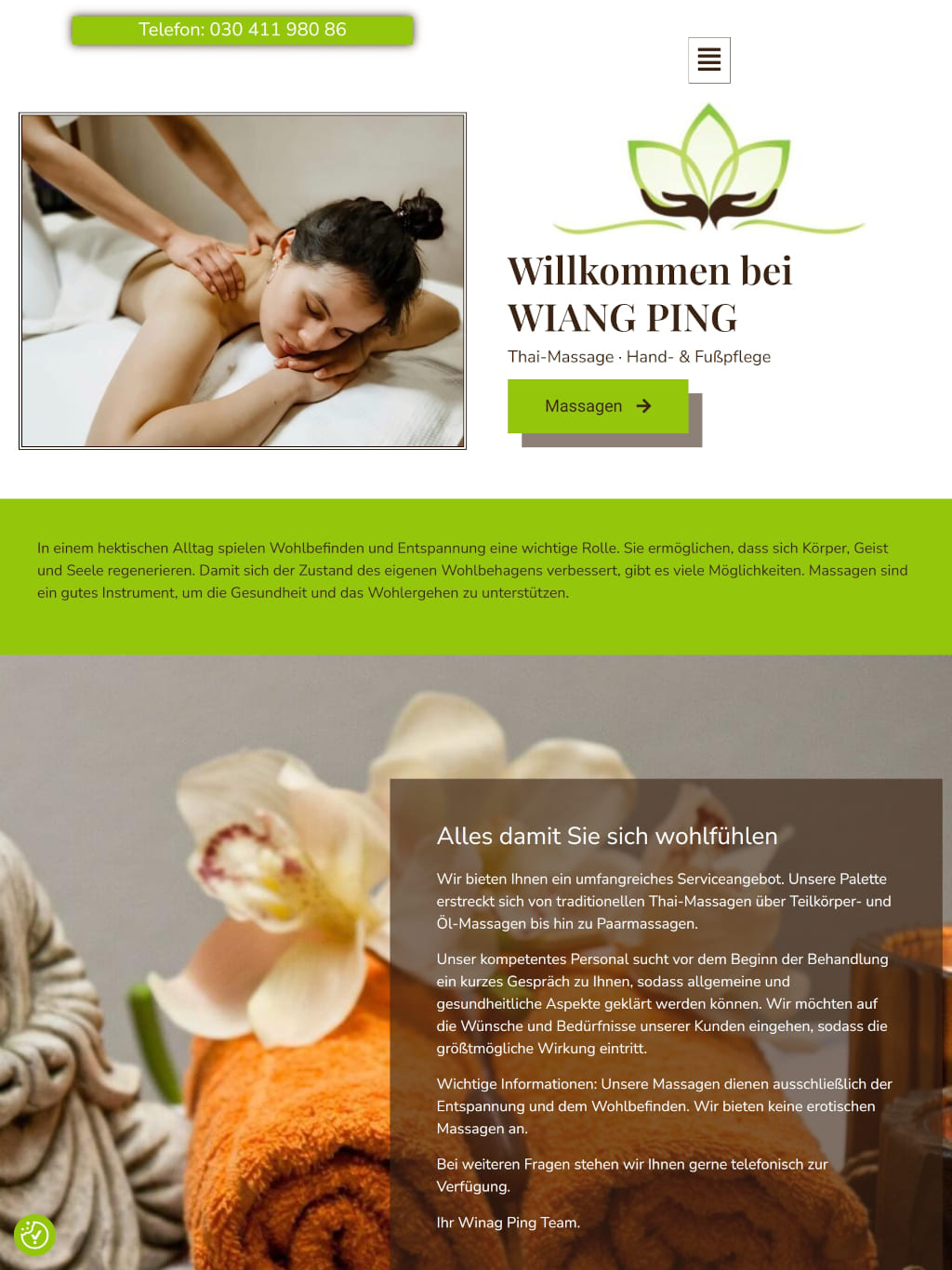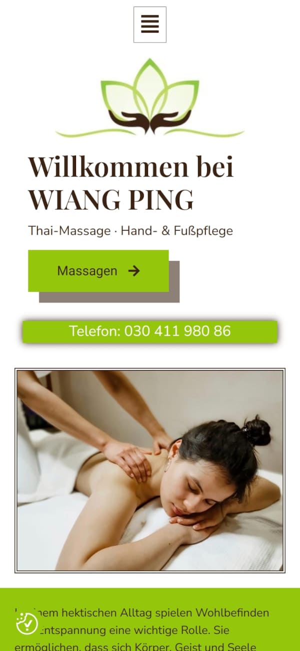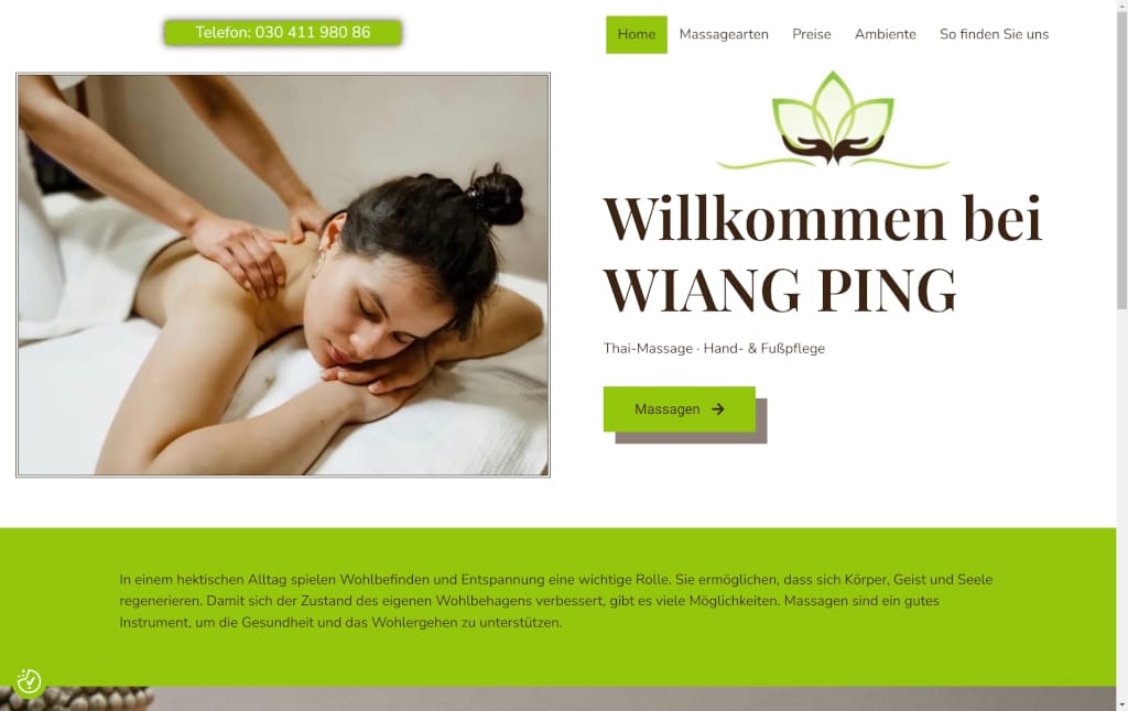 Ich entwickelte eine benutzerfreundliche WordPress-Website, die Wiang Ping als professionelles, authentisches Thai-Massage-Studio in Berlin-Tiergarten präsentiert:
