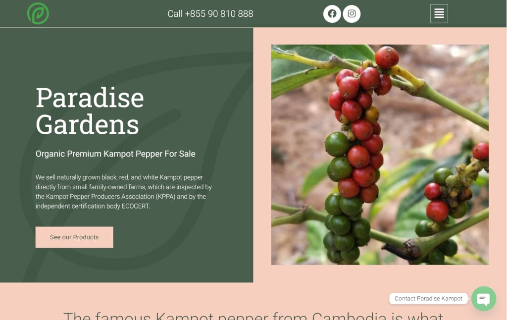 Paradise Gardens, ein zertifizierter Bio-Kampot-Pfeffer-Produzent und -Exporteur in Kambodscha, benötigte eine professionelle Online-Präsenz, um internationale B2B-Kunden und Einzelhändler zu erreichen. Die Hauptherausforderungen umfassten: