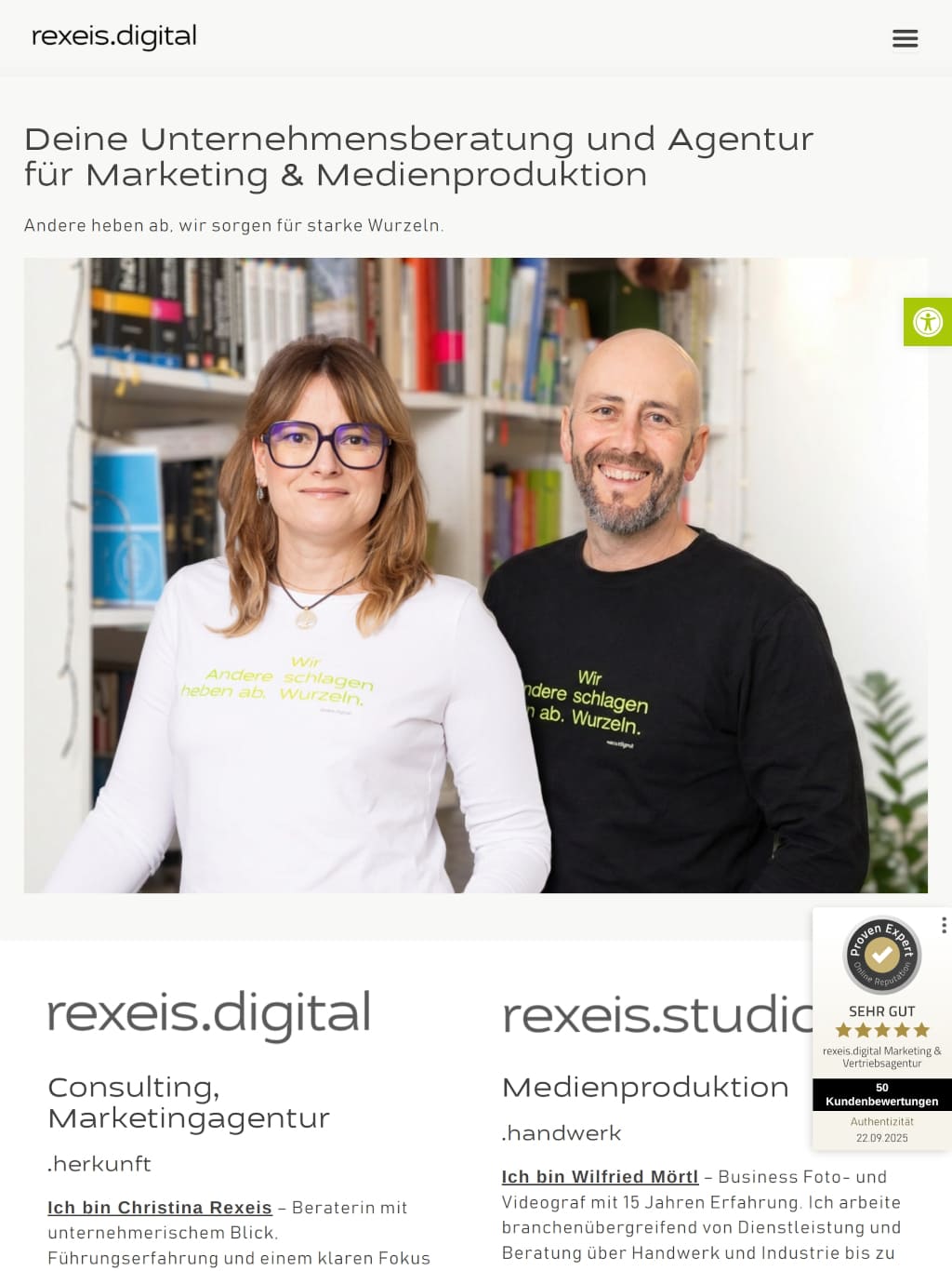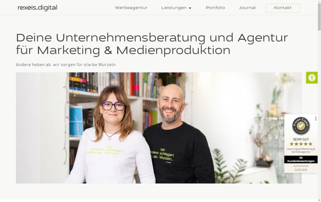 • Klare Einführung: „Rexeis.digital steht für durchdachtes Marketing und vertriebsnahe Strategien, verankert in fundierter Unternehmensberatung“