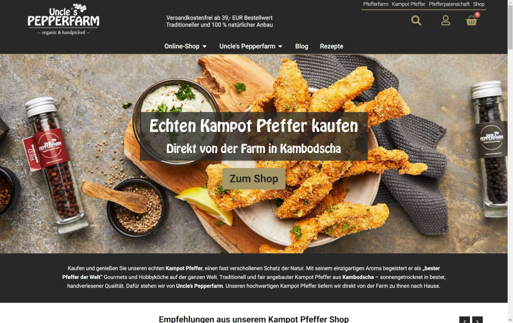 Uncle’s Pepper, ein Spezial-Importeur von Premium Kampot Pfeffer direkt aus Kambodscha, benötigte eine vollständige E-Commerce-Lösung zum Online-Verkauf ihrer hochwertigen, handverlesenen Pfefferprodukte. Die Hauptherausforderungen umfassten: