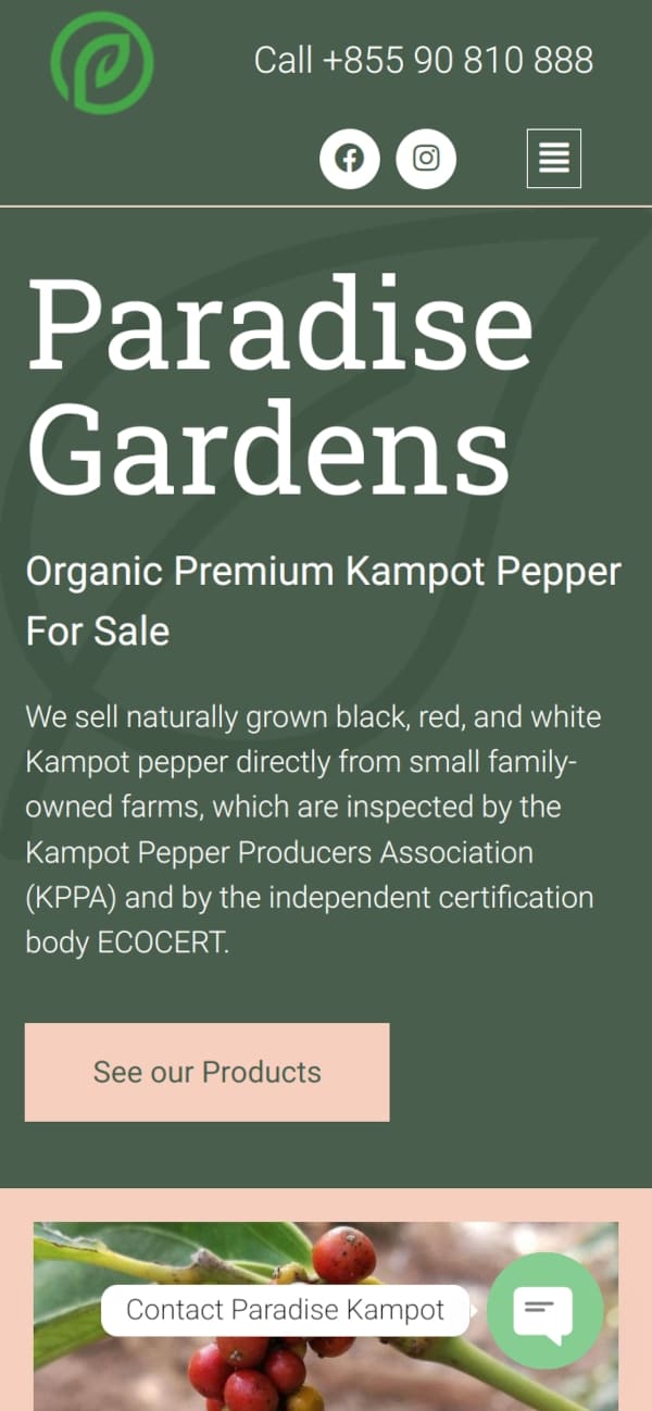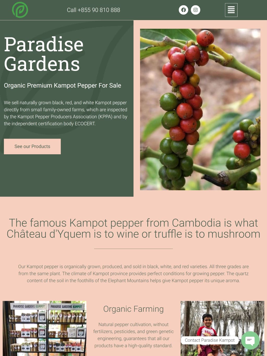 Paradise Gardens, a certified organic Kampot pepper producer and exporter in Cambodia, needed a professional online presence to reach international B2B customers and retail buyers. The main challenges included: