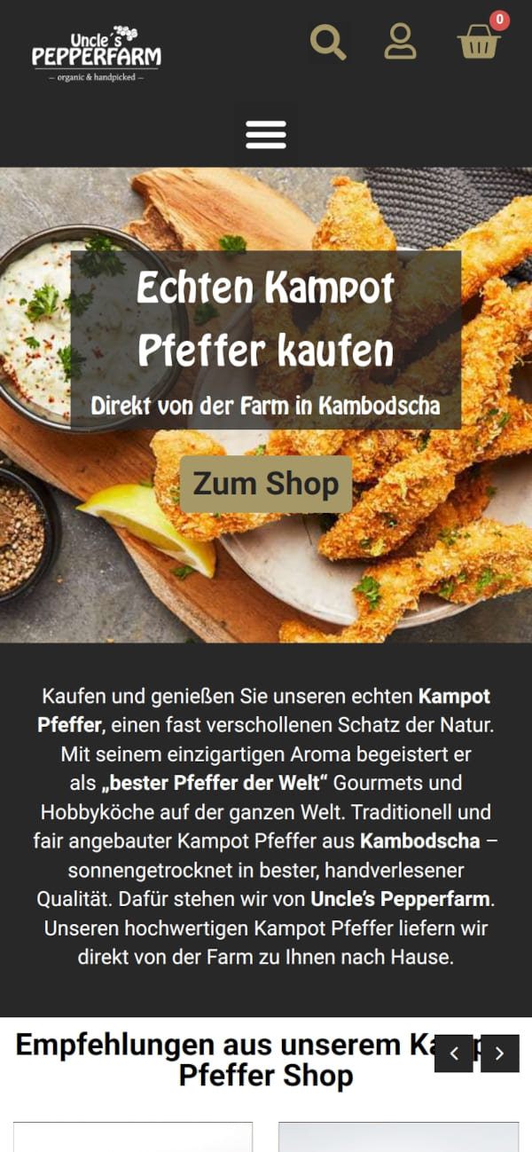 Professional WooCommerce online shop for premium Kampot pepper from Cambodia. Features direct farm-to-customer sales, fair trade story, recipe section, and full e-commerce functionality with secure payment processing.