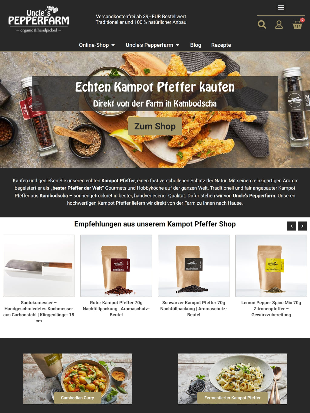 I developed a comprehensive WooCommerce-based online shop that combines effective e-commerce functionality with compelling storytelling about premium Kampot pepper and fair trade practices: